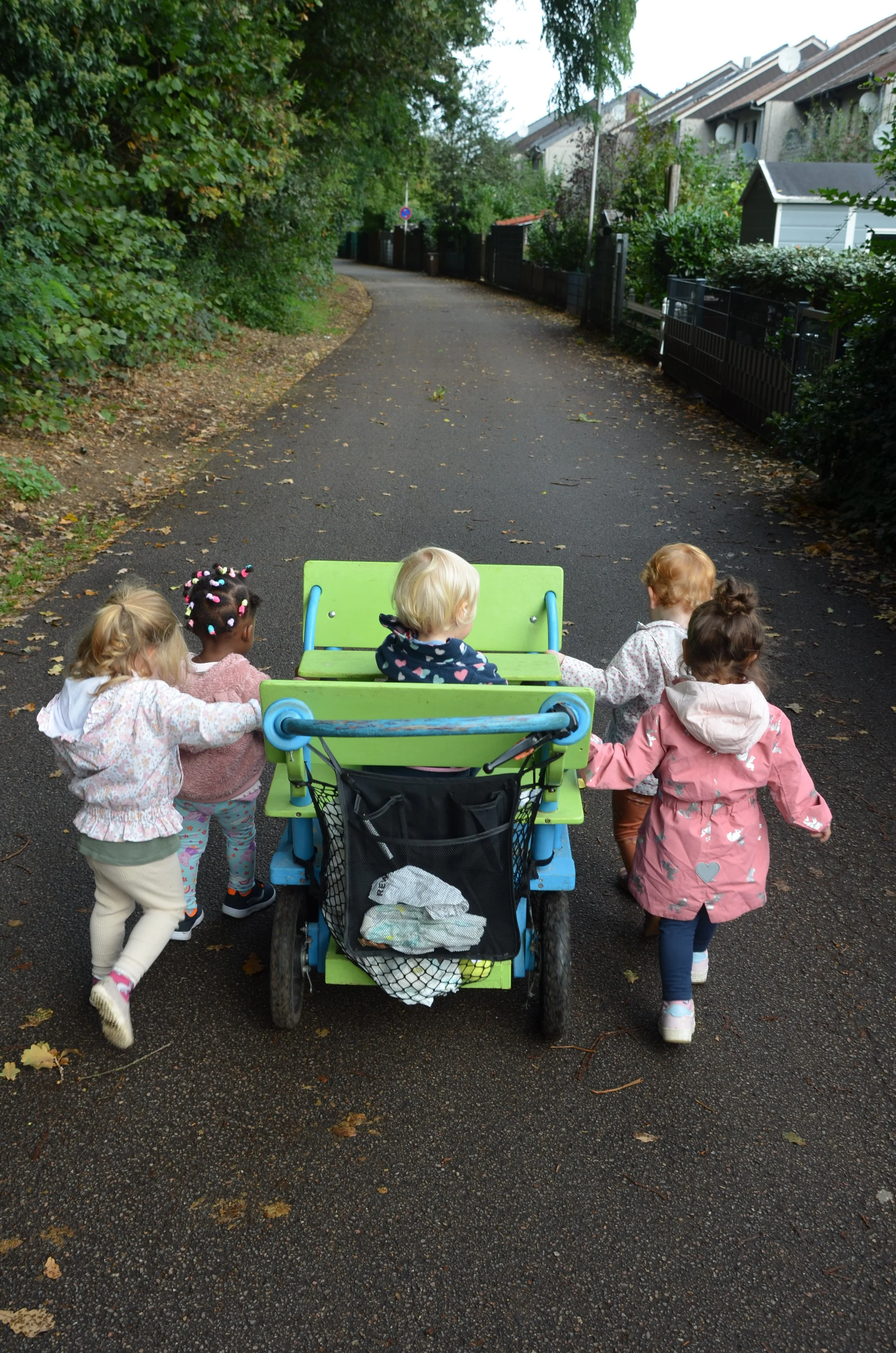 Mir ist es wichtig, die Kinder regelmäßig mit der Welt in Kontakt zu bringen. Deshalb mache ich häufig Ausflüge in die Natur, zu Spielplätzen oder gehe mit ihnen einfach mal Einkaufen, damit sie auch mit alltäglichen Abläufe vertraut werden und lernen sich dort sicher zu fühlen.